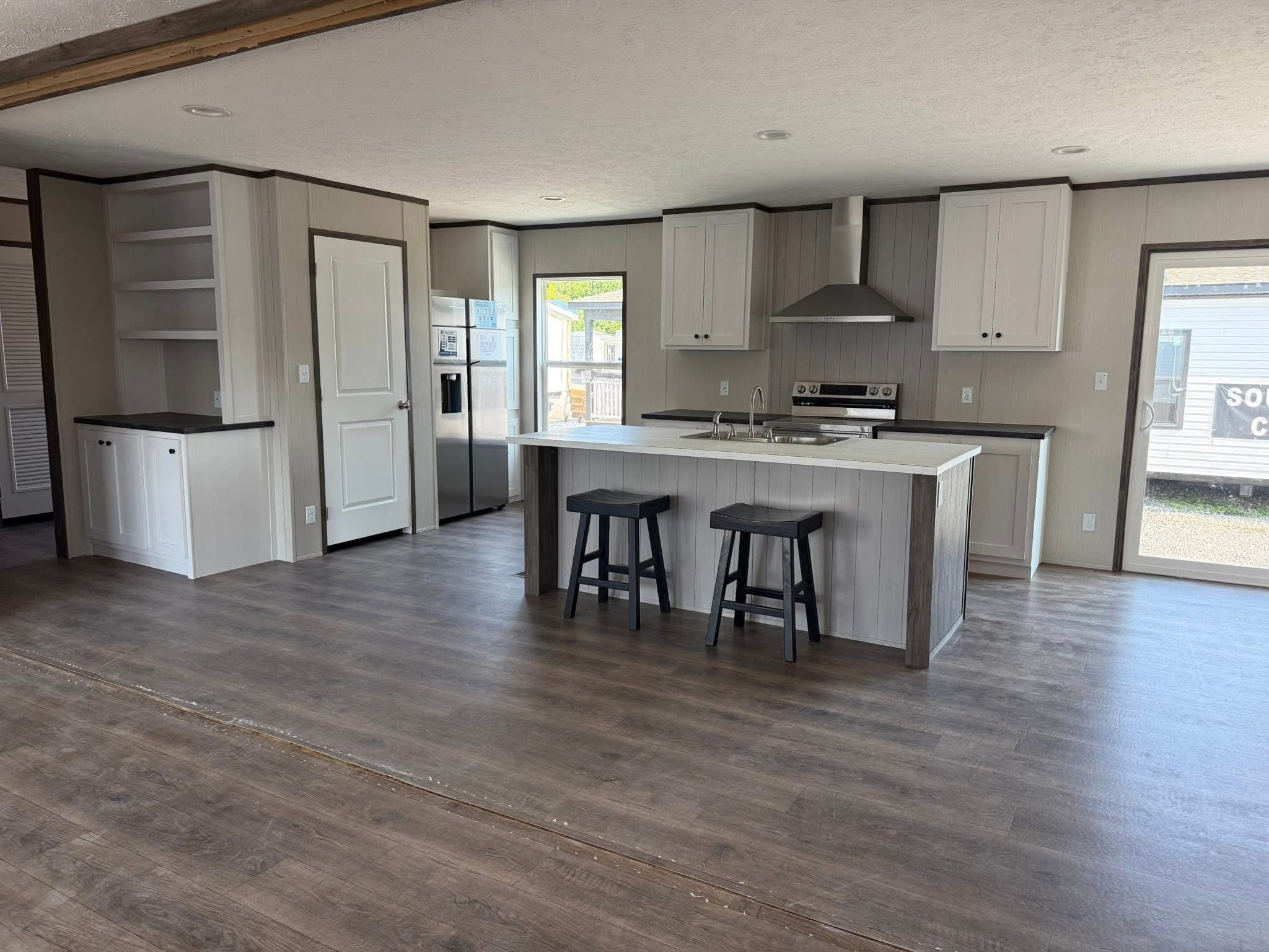 Details of the model: Presenting the Marvel TRU28564A, a roomy and exquisitely built mobile home that provides comfort and functionality. With 1,475 square feet of living space and four bedrooms and two bathrooms, this gorgeous home is ideal for a growing family. Your living experience is elevated to new levels by distinctive features including a luxury master bathroom with a spa-like bathtub and a modern kitchen with a huge island. A sustainable and economical lifestyle is guaranteed with energy-efficient appliances and excellent insulation.
