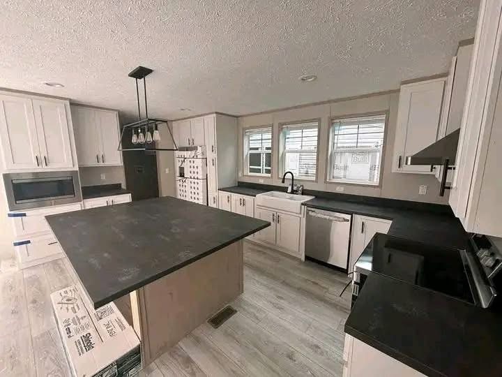 Model Details: Presenting the sleek and roomy Pure 2848, a mobile home that provides the modern family with an unbeatable blend of style and utility. This 1,369-square-foot home with three bedrooms and two bathrooms features an open concept layout and superb craftsmanship. The kitchen is completely furnished with reliable appliances, including a range hood, dishwasher, and 18-cubic freezer. Among the value-adding amenities that come with this amazing mobile home are stain-resistant carpeting, window curtains, and sky-exhausting drawers.