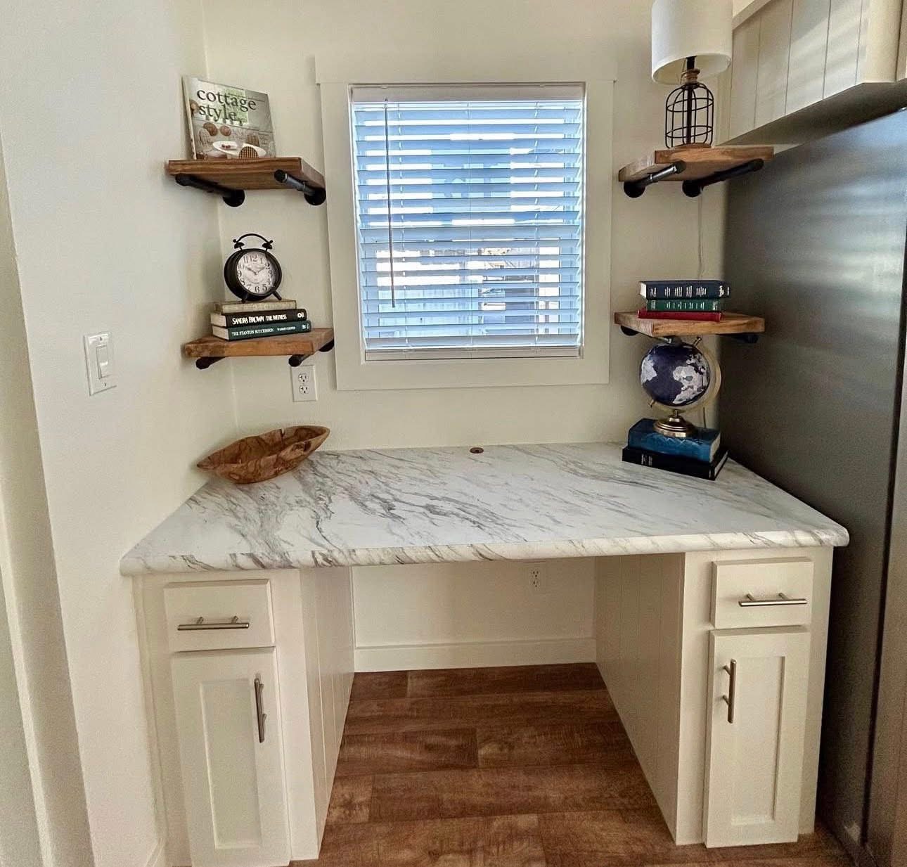 • Handy hallway desk nook for work or study space.