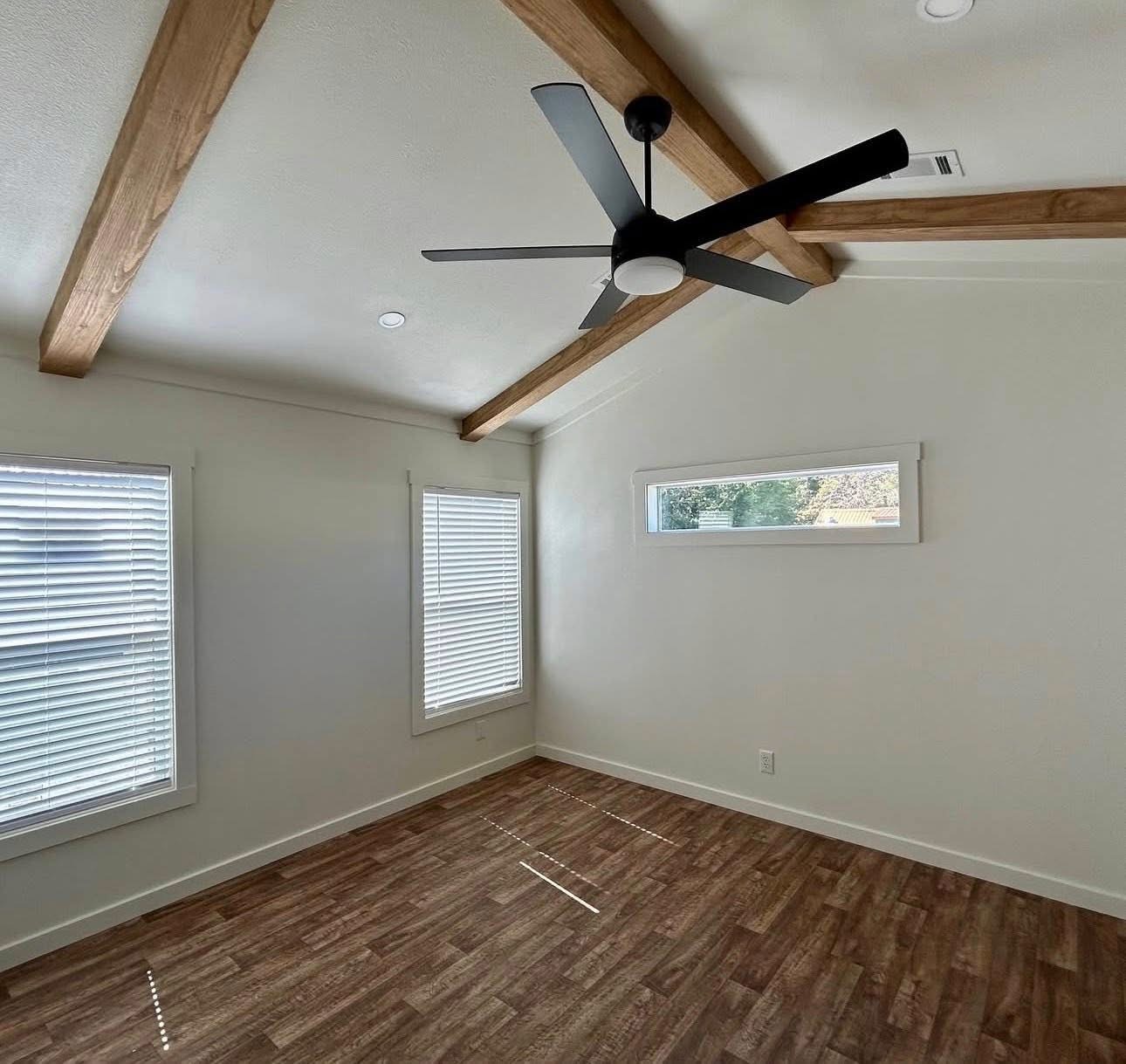 • Stained ceiling beams and solid wood interior doors to match for a rich, cohesive feel.